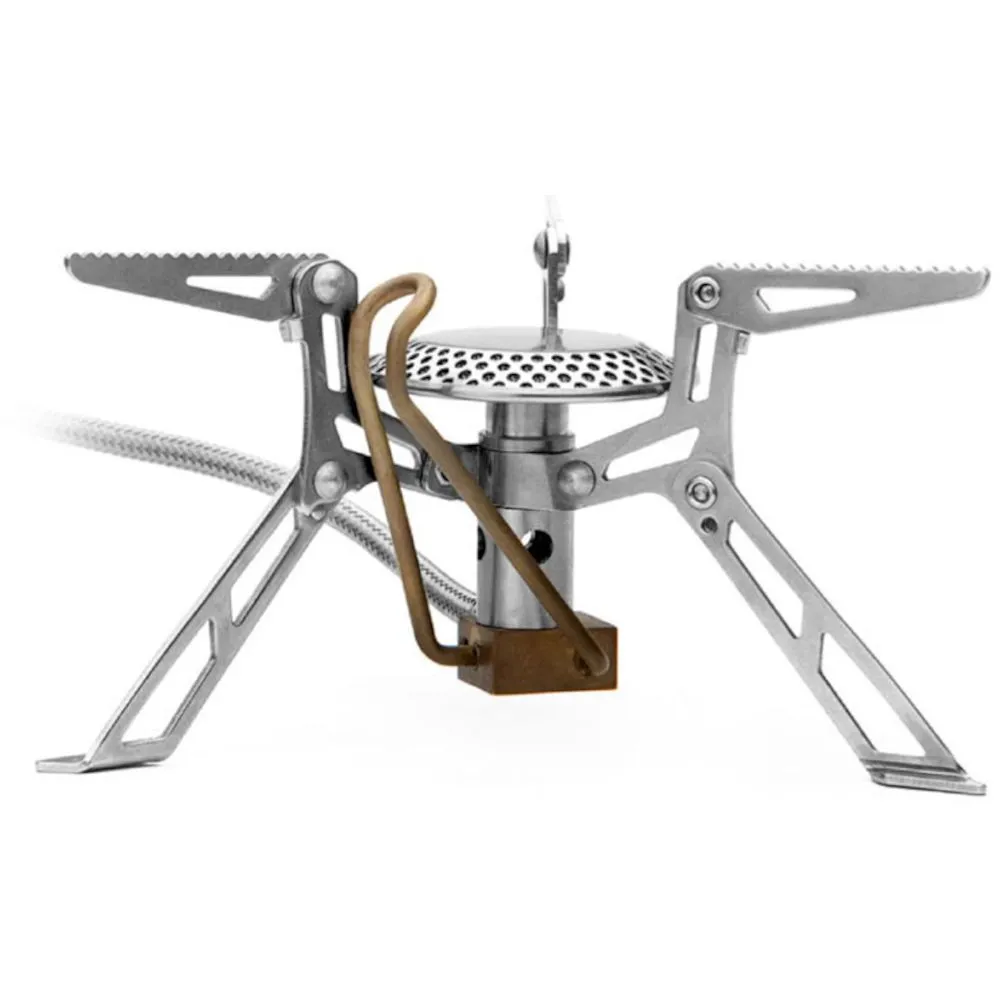 Один з найбільш компактних і легких пальників зі шлангом у своєму класі. Сталевий портативний газовий пальник FMS-118 VOLCANO підійде тим, хто віддає перевагу більш економному і безвідмовному варіанту. Головною особливістю якого є вбудована система попереднього підігріву палива, що дозволяє використовувати пальник при низьких температурах і збільшити енергоефективність системи. Велика площа конфорки забезпечує рівномірність приготування їжі, а широко розставлені лапки-тримачі з зубцями гарантують стійкість посуду і можуть витримати велику вагу. Основна частина пальника зроблена з нержавіючої сталі що робить його дуже міцним. Цей пальник легкий, компактний та економічний. Гнучкий шланг забезпечує віддалене підключення нарізного змінного картриджа, а так само дозволяє, перевернувши змінний картридж, використовувати паливо повністю.
